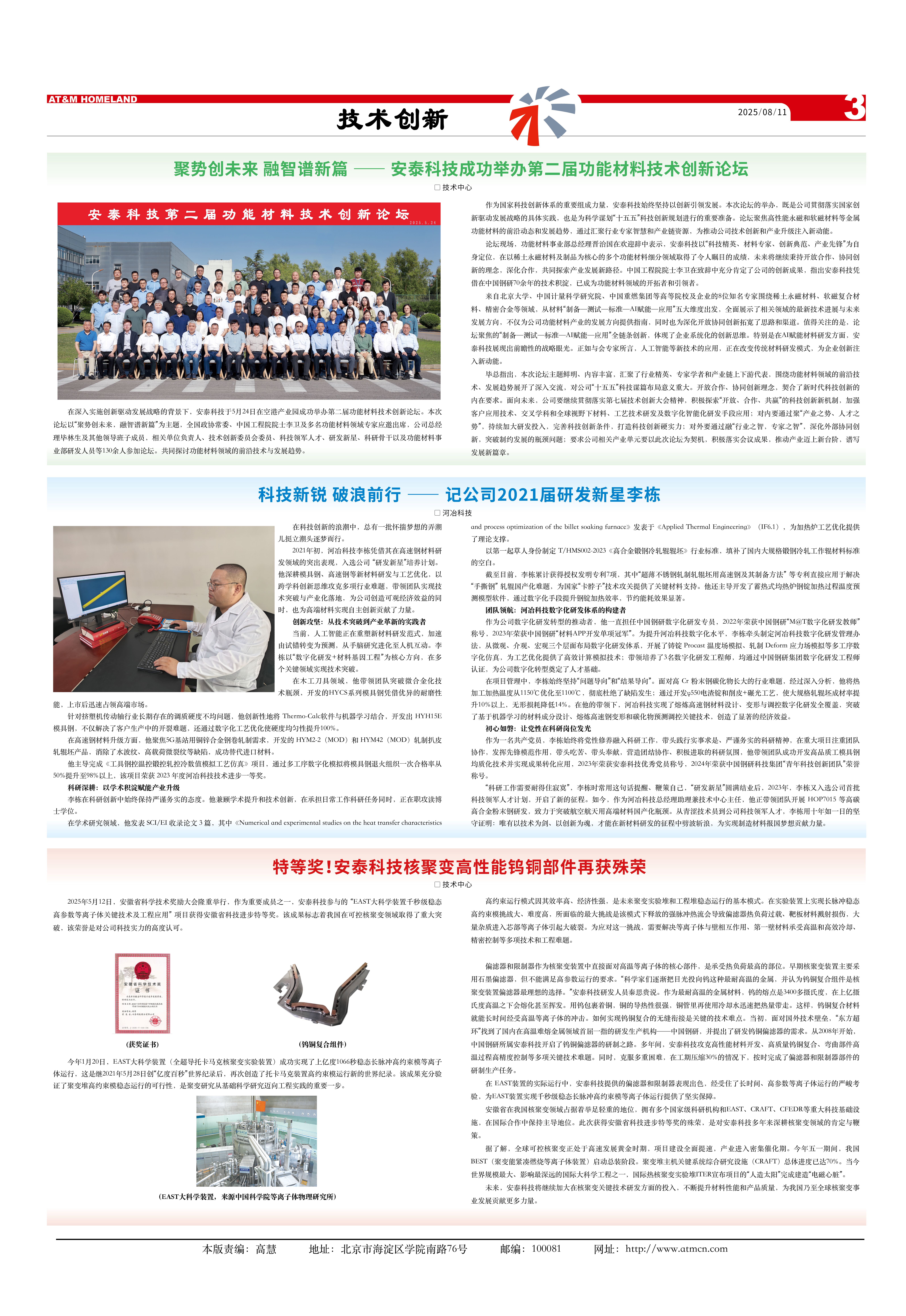 作為國(guó)家科技創(chuàng)新體系的重要組成力量,安泰科技始終堅(jiān)持以創(chuàng)新引領(lǐng)發(fā)展。本次論壇的舉辦,既是公司貫徹落實(shí)國(guó)家創(chuàng)新驅(qū)動(dòng)發(fā)展戰(zhàn)略的具體實(shí)踐,也是為科學(xué)謀劃“十五五”科技創(chuàng)新規(guī)劃進(jìn)行的重要準(zhǔn)備。論壇聚焦高性能永磁和軟磁材料等金屬功能材料的前沿動(dòng)態(tài)和發(fā)展趨勢(shì),通過匯聚行業(yè)專家智慧和產(chǎn)業(yè)鏈資源,為推動(dòng)公司技術(shù)創(chuàng)新和產(chǎn)業(yè)升級(jí)注入新動(dòng)能。
